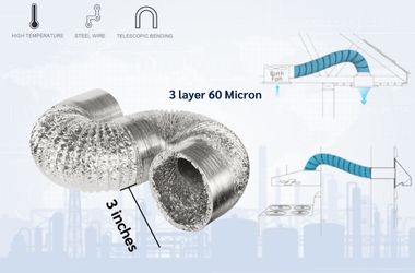 ท่อลมอลูมิเนียมฟอยล์ อลูมิเนียมช่วยป้องกันการกัดกร่อนและทนต่อความชื้น อีกทั้งผิวภายในท่อเรียบลื่น ลดแรงต้านการไหลของอากาศ ช่วยให้พัดลมหรือเครื่องดูดอากาศทำงานได้เต็มประสิทธิภาพ เป็นท่อระบายอากาศแบบอ่อนตัวที่ออกแบบมาสำหรับงานที่ต้องการความยาวและปริมาณอากาศมากกว่าท่อขนาดเล็ก เหมาะสำหรับห้องครัวขนาดใหญ่ ร้านอาหาร หรือระบบระบายอากาศในอาคารพาณิชย์และโรงงานขนาดกลาง โดยมีคุณสมบัติที่โดดเด่นทั้งความทนทาน ความยืดหยุ่น และประสิทธิภาพในการดูดอากาศ