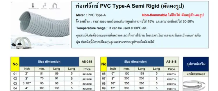 ✅ ผลิตจากวัสดุ PVC คุณภาพสูง ออกแบบมาเพื่อการส่งลมร้อน-ลมเย็นโดยเฉพาะ