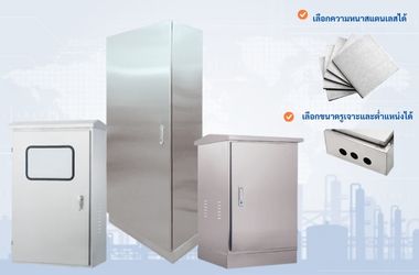 ตู้สแตนเลสเก็บอุปกรณ์ (ตู้ไฟฟ้าตั้งพื้น) ซึ่งถือเป็นปัจจัยสำคัญสำหรับงานอุตสาหกรรมที่มีความหลากหลาย ตัวตู้สามารถสั่งทำ (Custom Made) ตามขนาด ความหนาของแผ่นสแตนเลส และรูปแบบการใช้งาน เช่น การเจาะช่องติดตั้งอุปกรณ์หน้าตู้ (มิเตอร์ ปุ่มกด หรือตัวแสดงสถานะ), การออกแบบบานประตูแบบเปิดเดี่ยวหรือคู่ ไปจนถึงการเสริมช่องระบายอากาศและการติดตั้งอุปกรณ์เสริมเฉพาะงาน สิ่งเหล่านี้ช่วยให้ตู้ไฟฟ้าสามารถตอบโจทย์ทั้งงานควบคุมระบบอัตโนมัติ งานไฟฟ้ากำลัง ไปจนถึงงานสื่อสารและเครือข่ายได้ในตู้เดียว