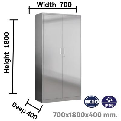 ตู้สแตนเลสเก็บของ ภายในตู้สแตนเลสขนาดนี้สามารถรองรับการติดตั้งอุปกรณ์ไฟฟ้าได้อย่างหลากหลาย เช่น เบรกเกอร์ สวิตช์ควบคุม รีเลย์ PLC พาวเวอร์ซัพพลาย หรือตู้ควบคุมระบบอัตโนมัติ (Automation Control) โดยมีพื้นที่เพียงพอสำหรับเดินสายไฟ จัดวางอุปกรณ์ และเว้นช่องสำหรับระบายความร้อนตามหลักการติดตั้งที่ปลอดภัย ตัวตู้มีขนาดกว้าง 700 มม. สูง 1800 มม. และลึก 400 มม. เหมาะสำหรับใช้ติดตั้งอุปกรณ์ไฟฟ้า สวิตช์บอร์ด ตู้ควบคุมอัตโนมัติ หรือเก็บเครื่องมือที่ต้องการความสะอาดและป้องกันฝุ่นหรือไอน้ำ ตัวโครงสร้างแข็งแรง รองรับน้ำหนักได้ดี พร้อมโครงเสริมภายในตามจุดรับแรง